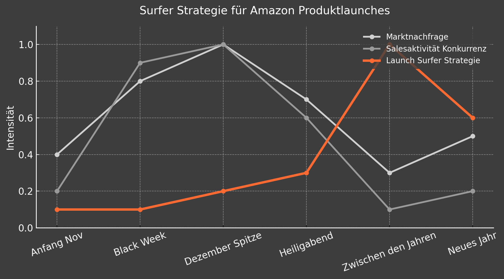 Denn anstatt gegen die normalen Salesvolumen der Konkurrenten zu kämpfen, ist es wesentlich leichter in den Markt zu pushen, wenn alle anderen sowieso wenig verkaufen und sich genau dann bei Amazon die Rankings zu sichern.